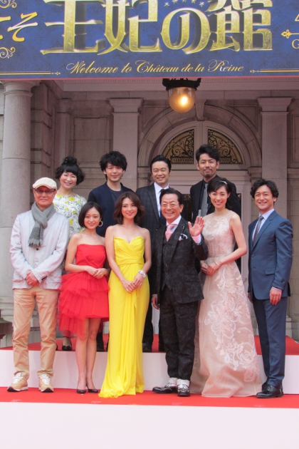 原作者の直木賞作家・浅田次郎が「映像化は不可能」と語ってきた同名小説を水谷豊主演で映画化した「王妃の館」の完成披露イベントが4月16日(木)に行われた。日本語で“王妃の館”を意味するパリの一流ホテル“シャトー・ドゥ・ラ・レーヌ”を舞台としていることから、この日は同ホテルを模した会場に主演の水谷はじめキャスト陣がドレスアップし、“幸運の象徴”でもある馬車に乗って登場。田中麗奈、吹石一恵、安達祐実という美女3名をエスコートした水谷は「3人の女性といっぺんに結婚したような気持ち」と照れながらも「ようこそお越し下さいました!」と挨拶した。
